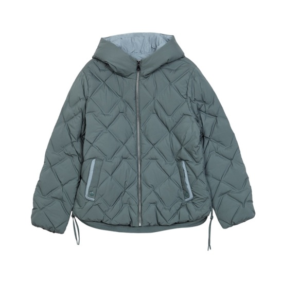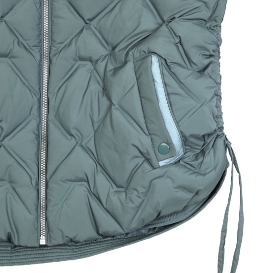 스타일의 경량 다운 점퍼이며 편하고 무난하며 아주 가볍고 포근하게 착용 가능하며 옆 부분에 스트링이 있어 끈을 당겨 줄여 샤링를