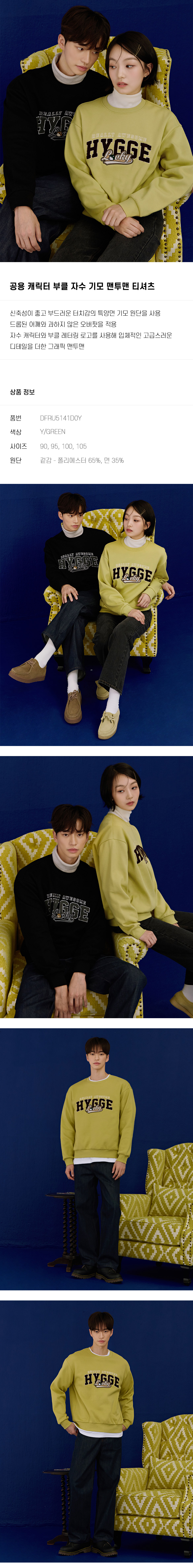 (현대Hmall)체이스컬트 공용 HYGGE 캐릭터 자수 기모 맨투맨 T-SHIRT/3Color