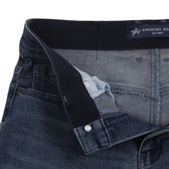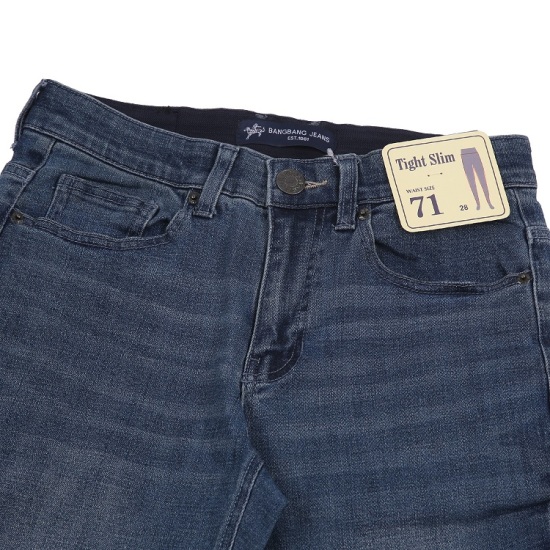 2025년 가을 신상품이며 허리 부분이 속밴드로 되어 있는 스티일의 속밴드 타이트 슬림 스판 청바지이며 워싱의 느낌이 아주