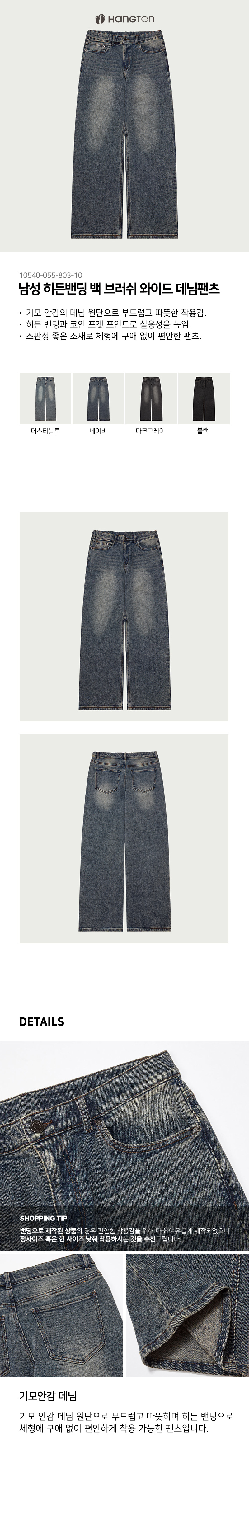 [행텐] 남성 히든밴딩 백 브러쉬 와이드 데님팬츠_290(10540-055-803-10)