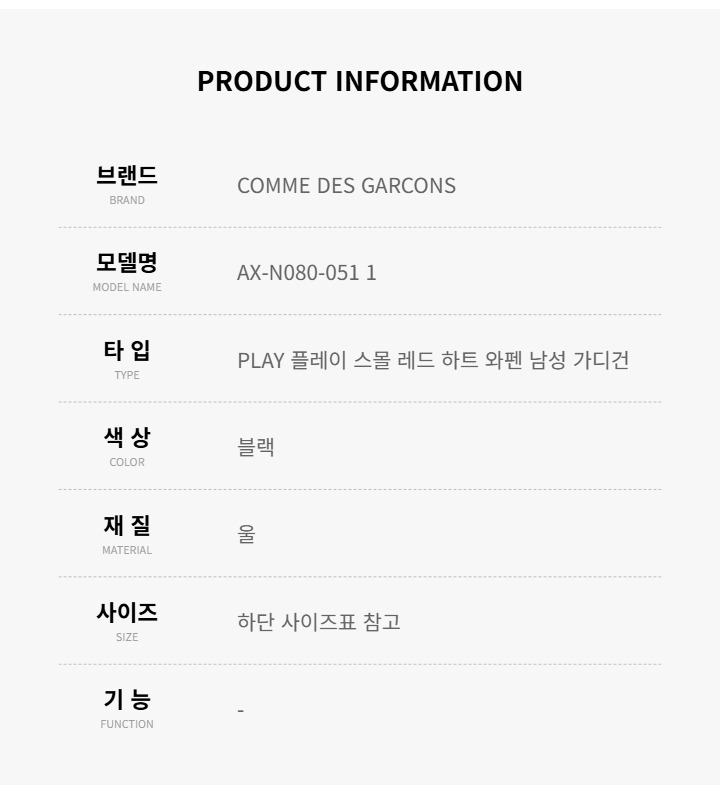 (현대Hmall)꼼데가르송 남성 PLAY 플레이 스몰 레드 하트 와펜 가디건(AX N080 051 1)