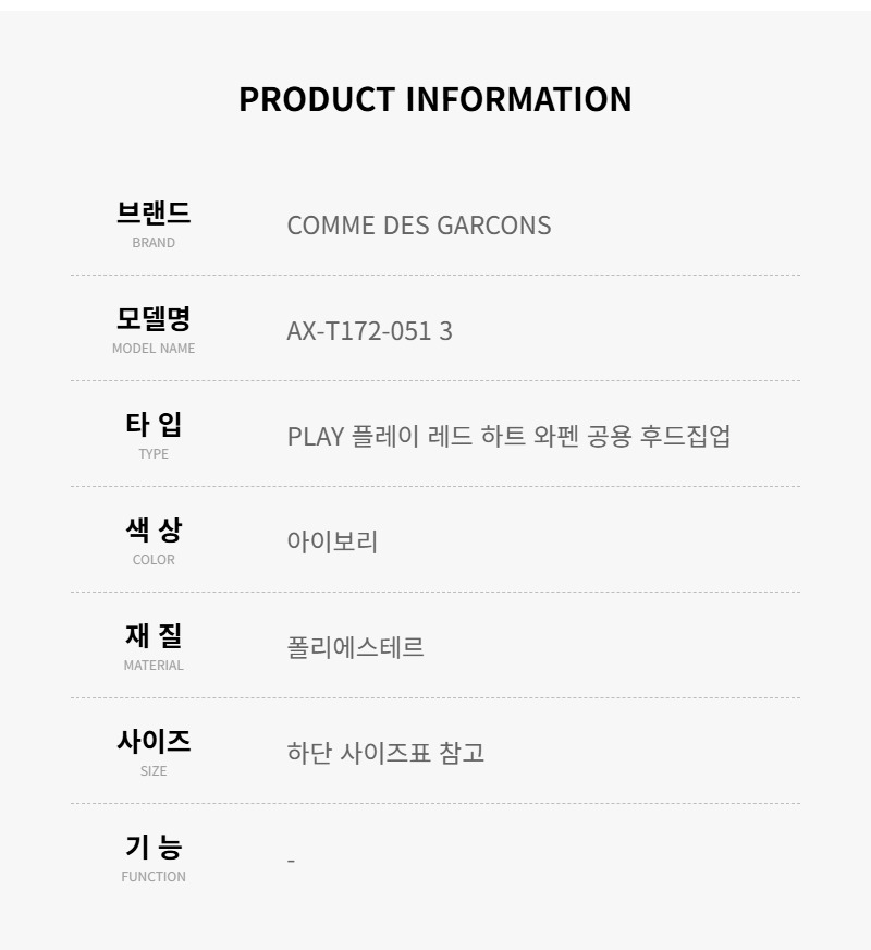 (현대Hmall)꼼데가르송 남녀공용 PLAY 플레이 레드 하트 와펜 후드 티셔츠(AX T172 051 3)