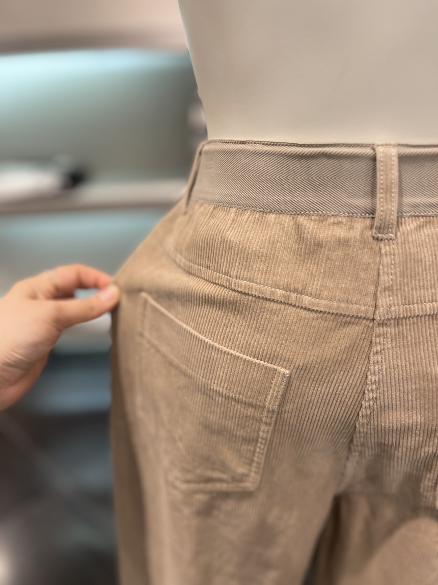 소프트한 터치감이 돋보이는 코듀로이 소재로 제작된 와이드 팬츠입니다.