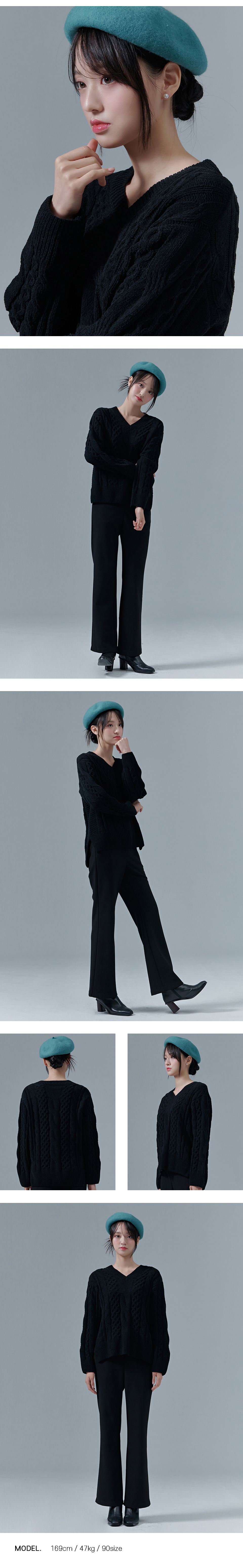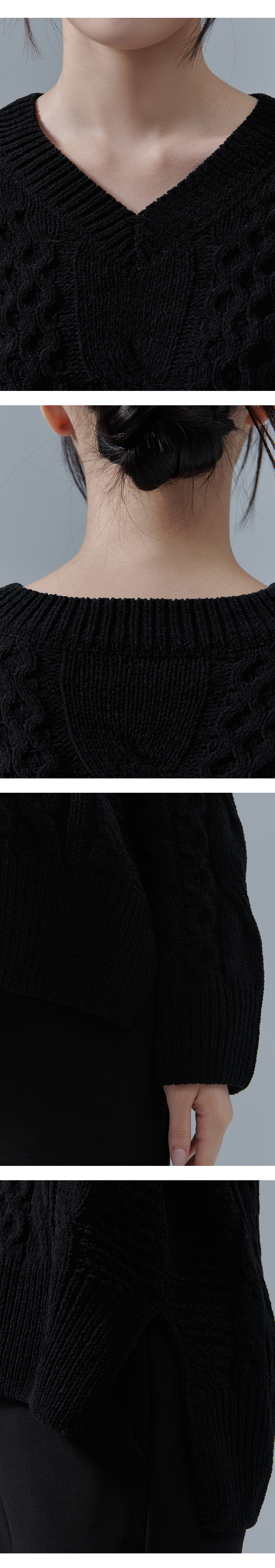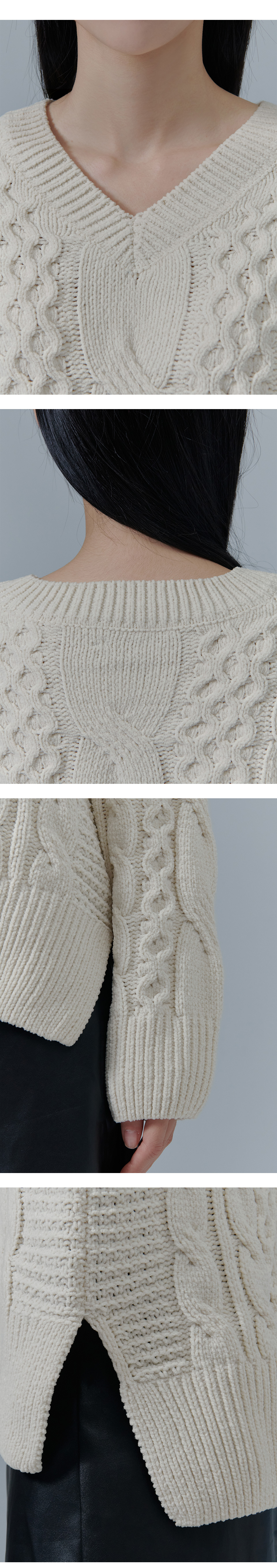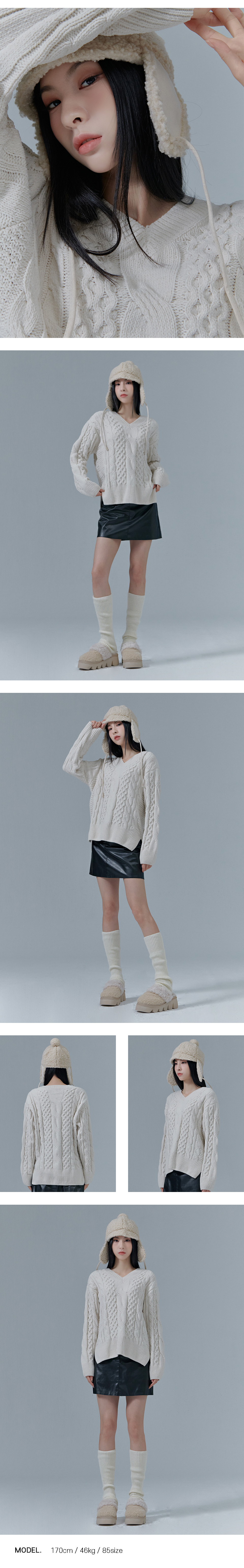 하프클럽/체이스컬트 W 케이블 브이넥 스웨터