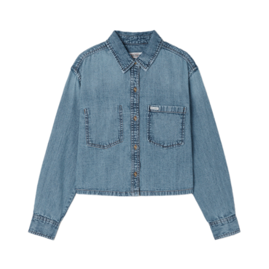 - 상품설명 크롭 긴팔 데님 셔츠