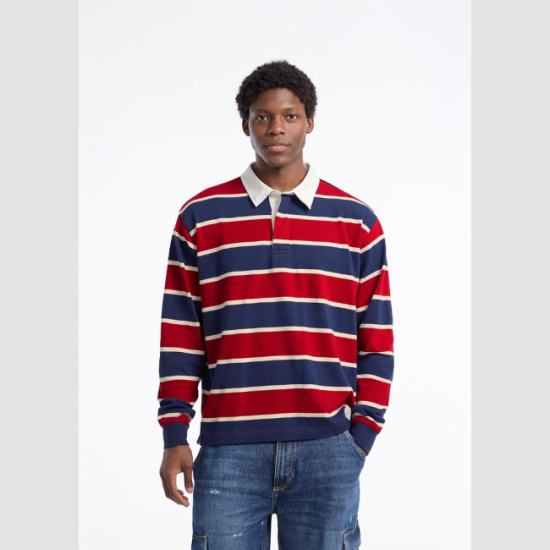 (롯데백화점)공용 오버사이즈 럭비 스트라이프 폴로 긴팔티(MPDK1310)