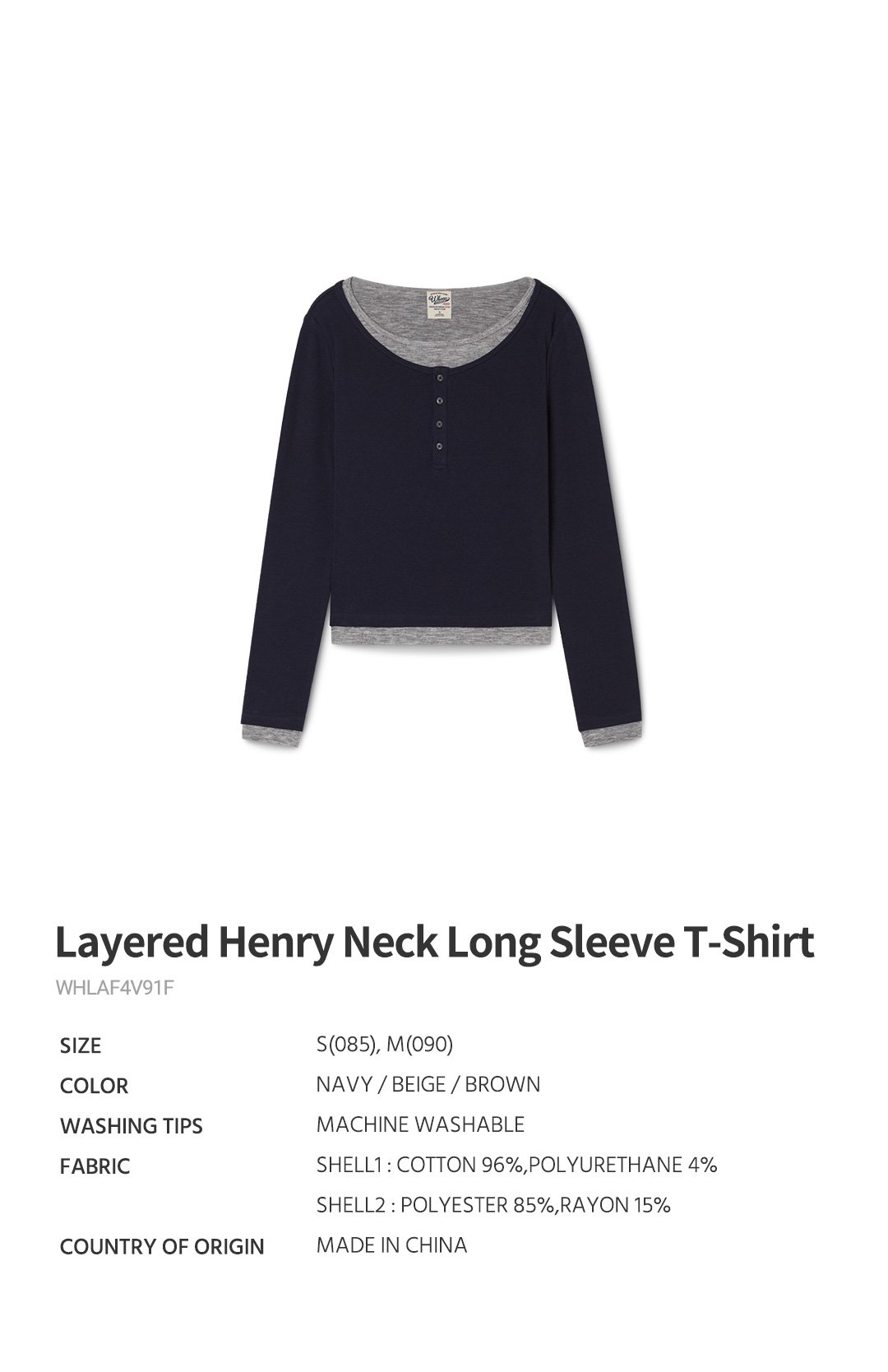 (신세계마산점)Layered Henry Neck Long Sleeve T-Shirt WHLAF4V91F