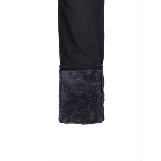 청바지이며 편하고 무난하며 코디가 다양하게 잘 어울리는 스타일의 밍크 보아 본딩 스판 블랙 진바지이며 데님 원단 안쪽에 기모 가공을