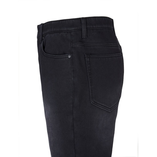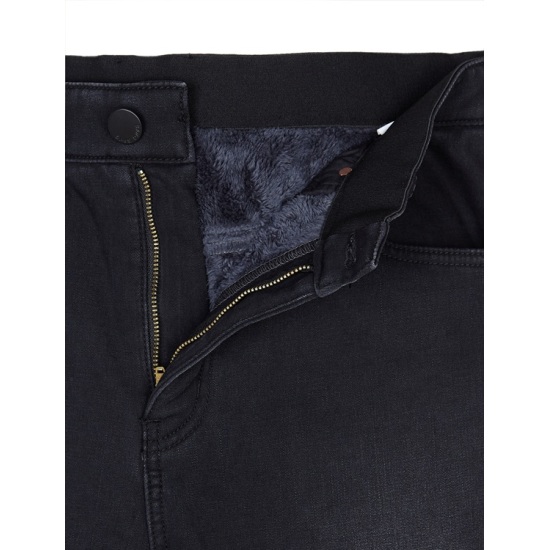 청바지이며 편하고 무난하며 코디가 다양하게 잘 어울리는 스타일의 밍크 보아 본딩 블랙 진 청바지이며 데님 원단 안쪽에 기모 가공을