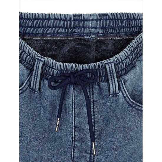 허리 부분은 끈 줄임이 가능하며 편하고 무난하며 코디가 다양하게 잘 어울리는 스타일의 밍크 보아 본딩 청바지이며 데님 원단 안쪽에