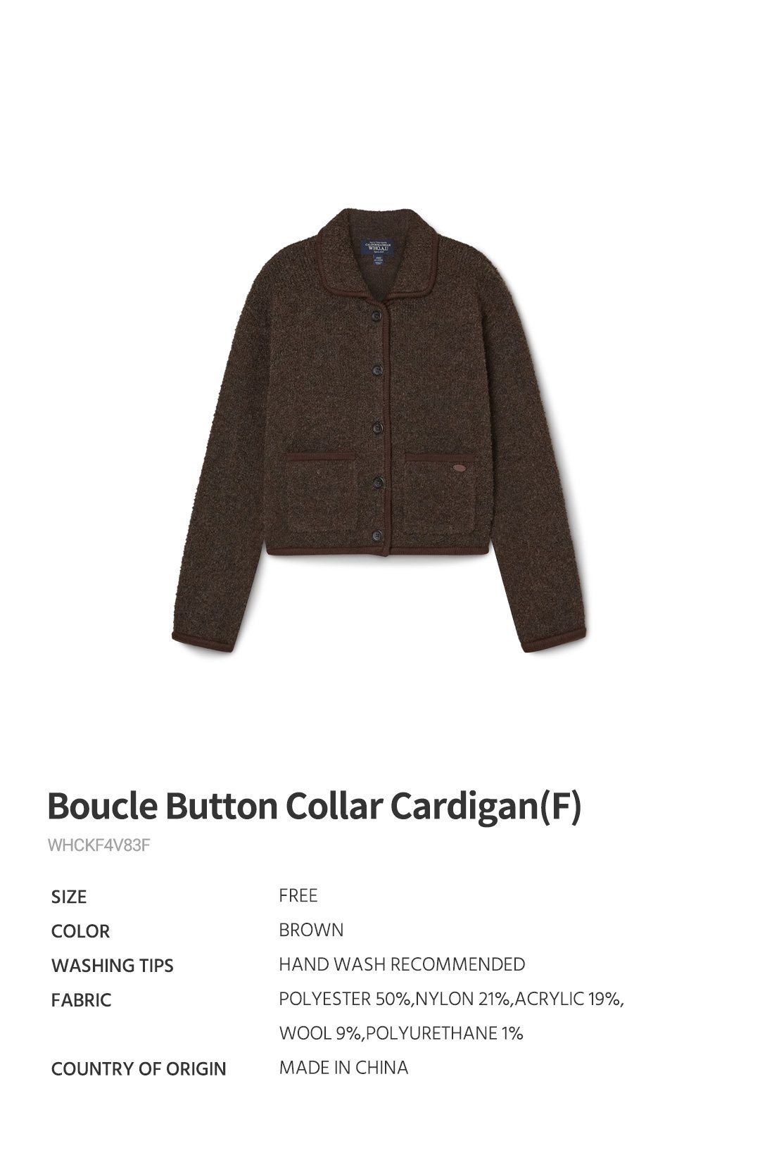 (신세계센텀점)부클 버튼 카라 가디건 (F) (WHCKF4V83F)