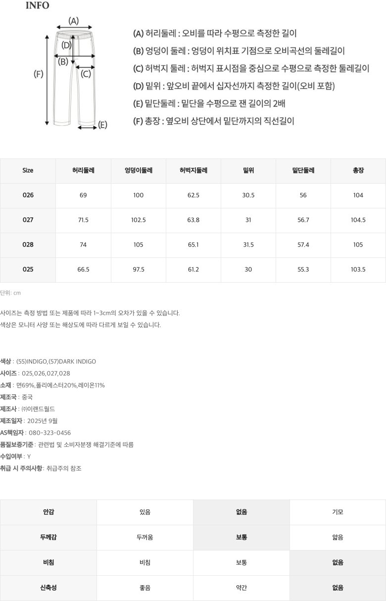 (신세계센텀점)코듀로이 워싱 데님 팬츠(F) (WHTJF4T54F)