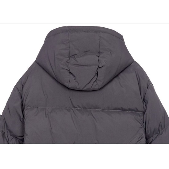 오버핏에 후드가 있는 스타일에 패딩 점퍼로 후드는 탈부착이 가능하며 목선 부분까지 지퍼를 올리면 목 부분까지