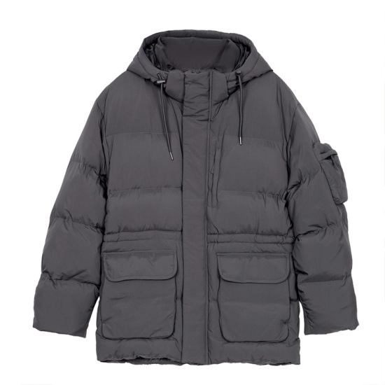 스타일의 점퍼이며  코디가 다양하게 잘 어울리는 스타일의 후드 탈부착 패딩 야상 사파리 덕 다운 점퍼