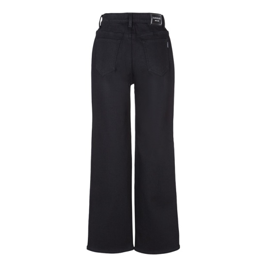 2025년 겨울 신상품이며 속밴드 루즈핏 밍크 보아 블랙진이며 허리 부분이 속밴드로 되어 있는 스타일의 밍크 보아 기모 루즈핏