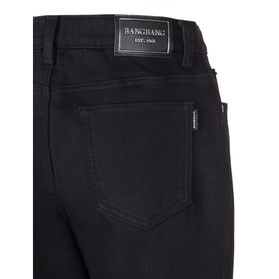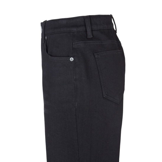 스판 블랙 진청바지이며 편하고 무난하며 코디가 다양하게 잘 어울리는 스타일의 스판 청바지이며 데님 원단 안쪽에 기모 가공을 더하여
