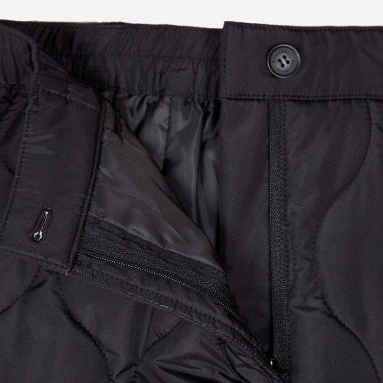 원단이 퀄팅으로 포인트를 주었으며 옆 주머니  부분에 스트링이 있으며