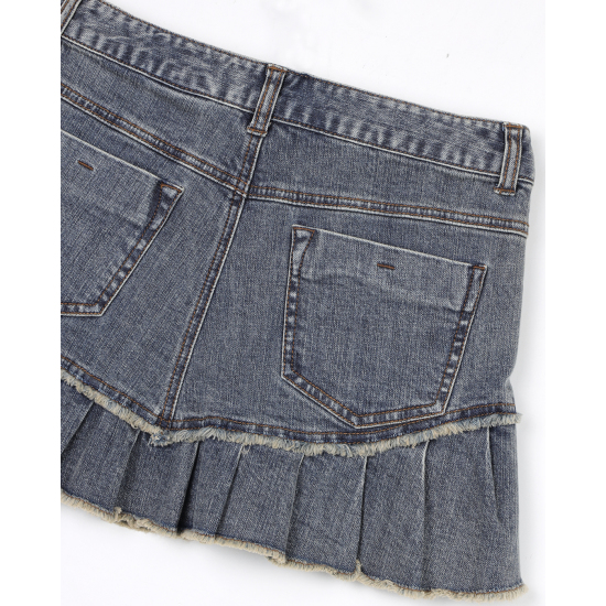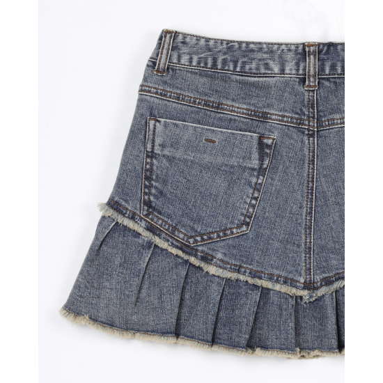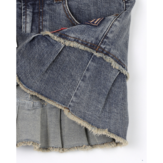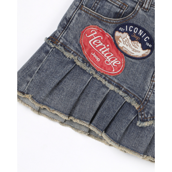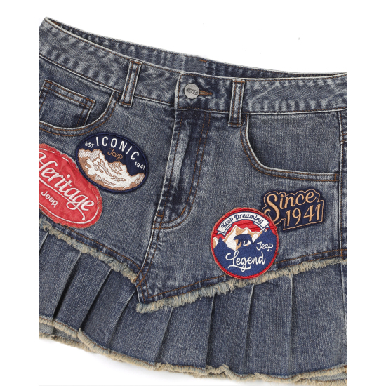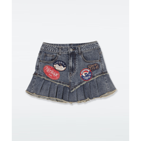 - 멀티 와펜 포인트의 데님 숏팬츠형 스커트