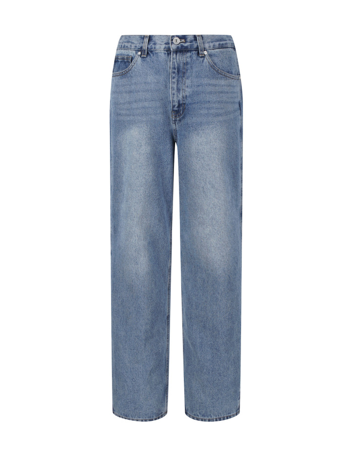 *힙부터 밑단까지 여유있는 실루엣의 루즈 와이드 핏으로 사이드 포인트가 들어간 절개라인과 워싱이 트렌디하게 연출하기 좋은 와이드 팬츠
