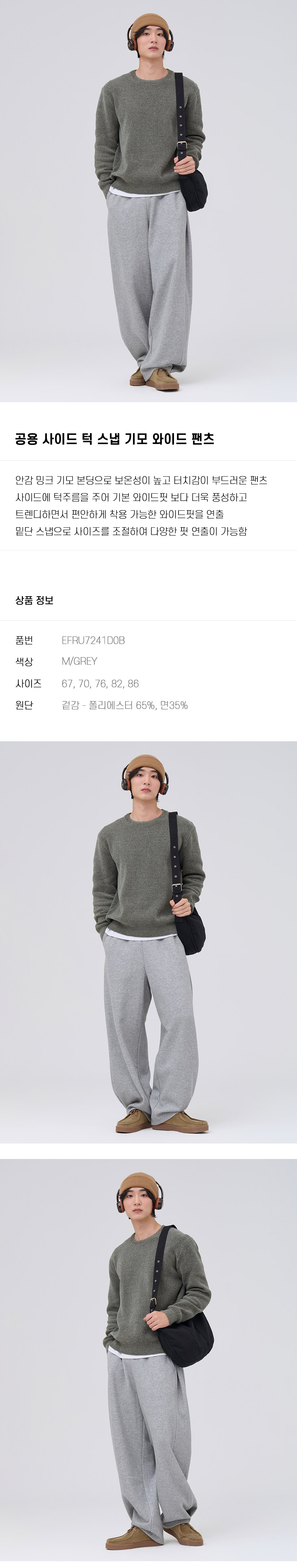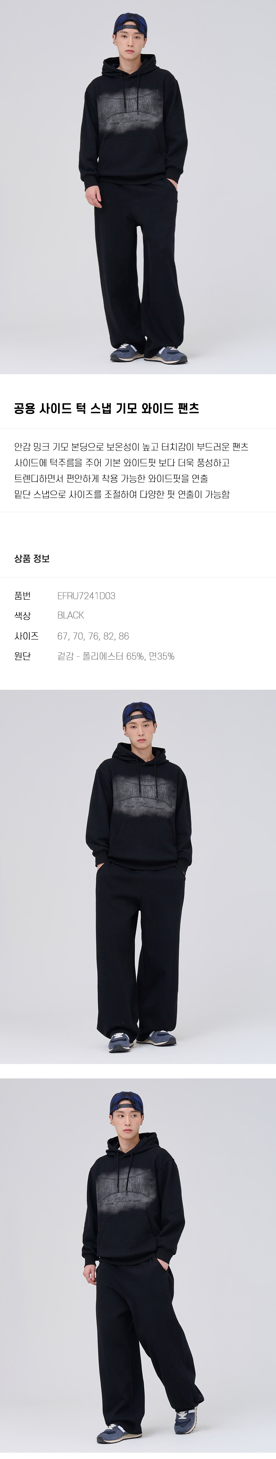 하프클럽/체이스컬트 U 사이드 턱 기모 와이드 팬츠