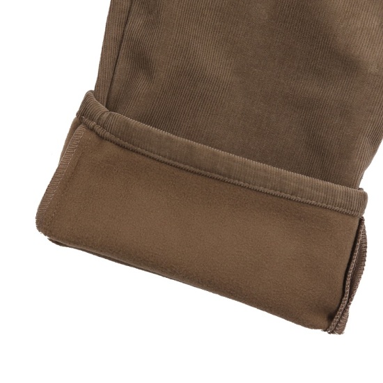 착용가능하며 밑이가 여유롭게 나온 스타일의 골덴 속밴드 테이퍼드 기모 바지이며 연령대 상관없이