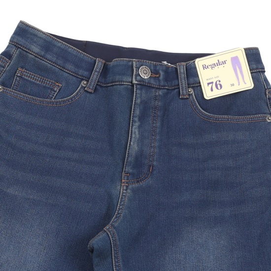 2025년 겨을 신상품이며 속밴드 레귤러 스판 청바지이며 허리 부분이 속밴드로 되어 있는 스타일의