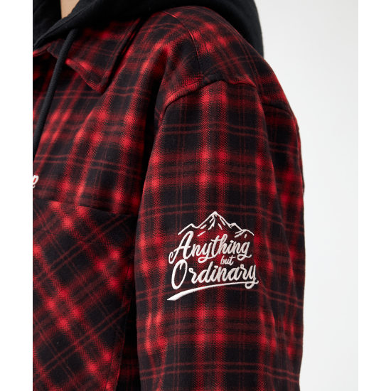 후드 탈부착 패딩 체크셔츠