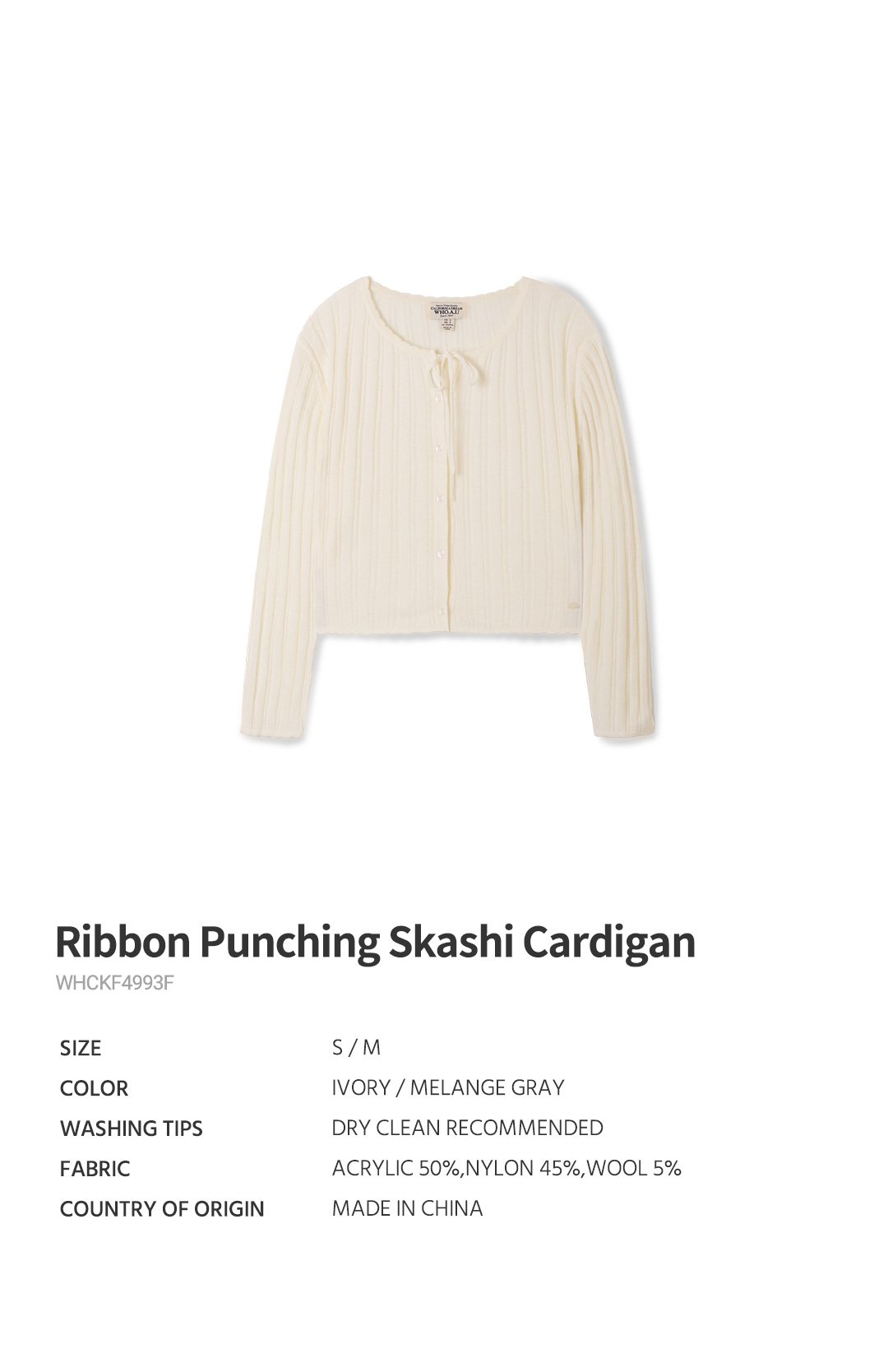 (신세계의정부점)Ribbon Punching Skashi Cardigan WHCKF4993F