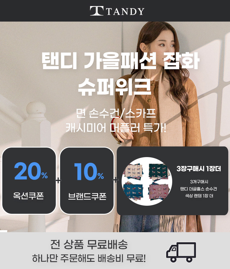 (20%+10%)탠디 선물추천/가을 아이템/실크/면 손수건/주름 스카프 베스트 100종 3개구매시 1개 추가증정