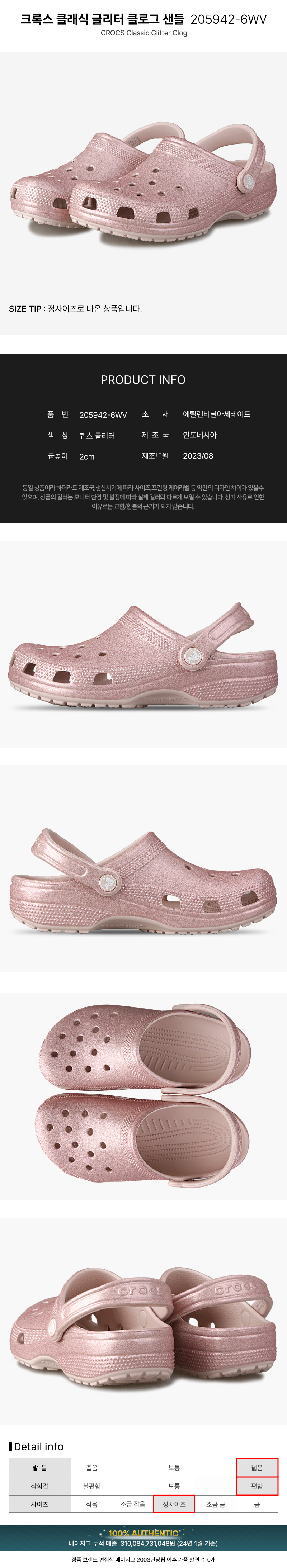2025 SS 크록스 클래식 글리터 클로그 여성 슬리퍼 샌들 콰츠 205942-6WV