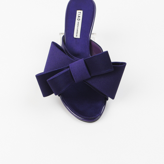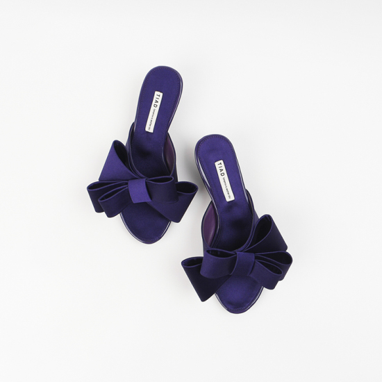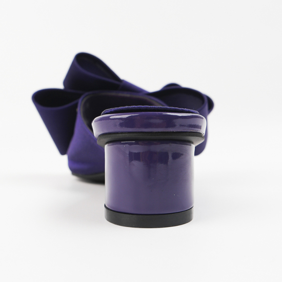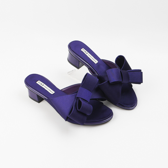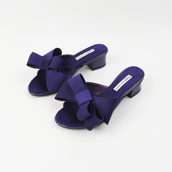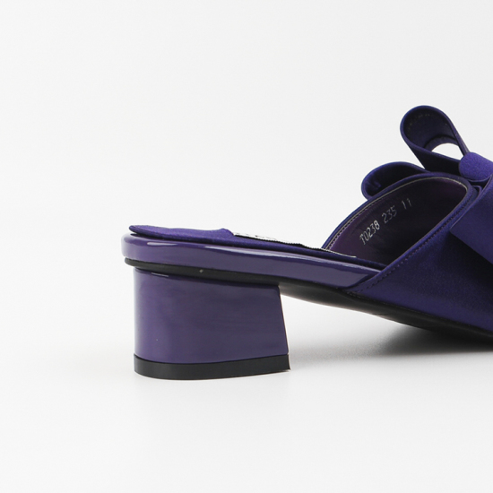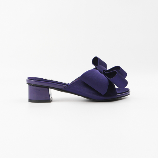 (롯데백화점)여성 뮬 슬리퍼 힐 4cm 여름 왕리본 뮬 샌들 힐 샤틴 발편한 통굽 AG250238 퍼플