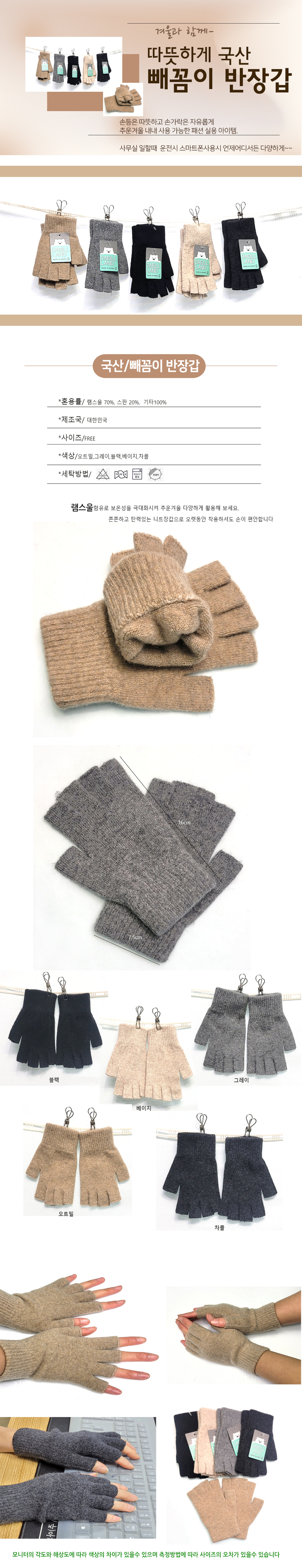 국내생산/램스울 빼꼼이손가락 반장갑/손가락장갑/겨울용/키보드장갑/장갑/털장갑/보온장갑/니트/방한