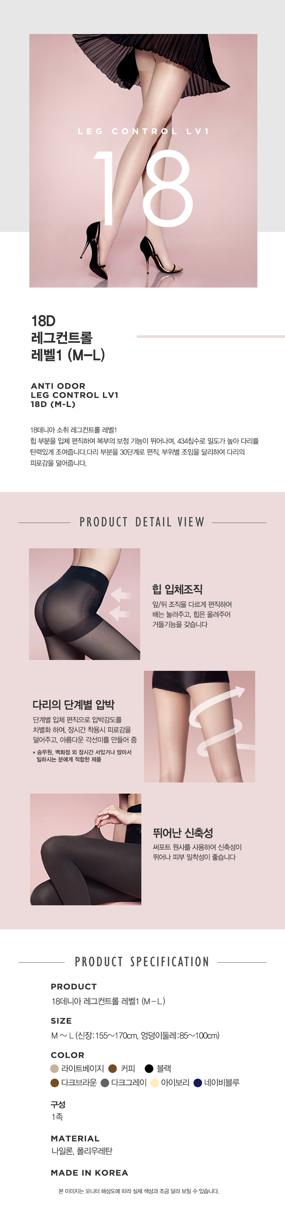 비너스스타킹 앙코르 18D 레그컨트롤 팬티스타킹 압박강도1 (A2160)
