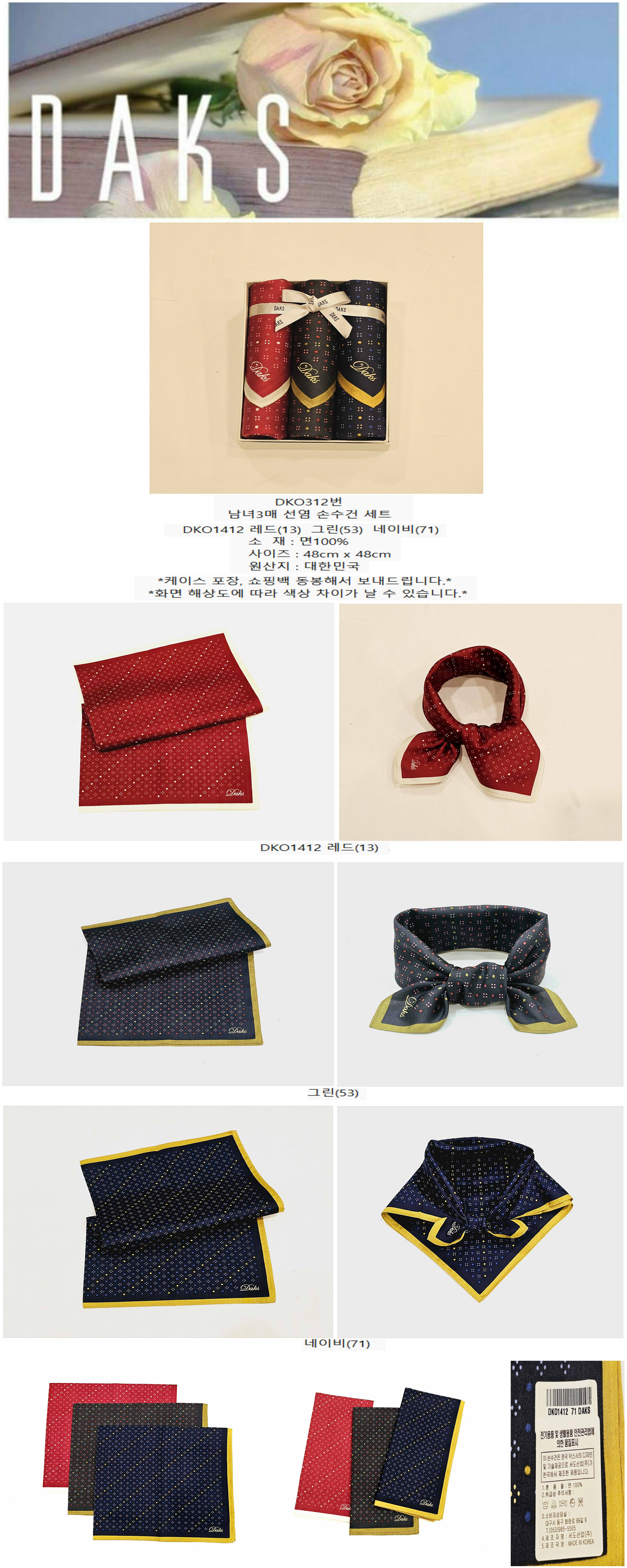 대구백화점 닥스남녀3매 나염 손수건 세트(DKO312-1번)