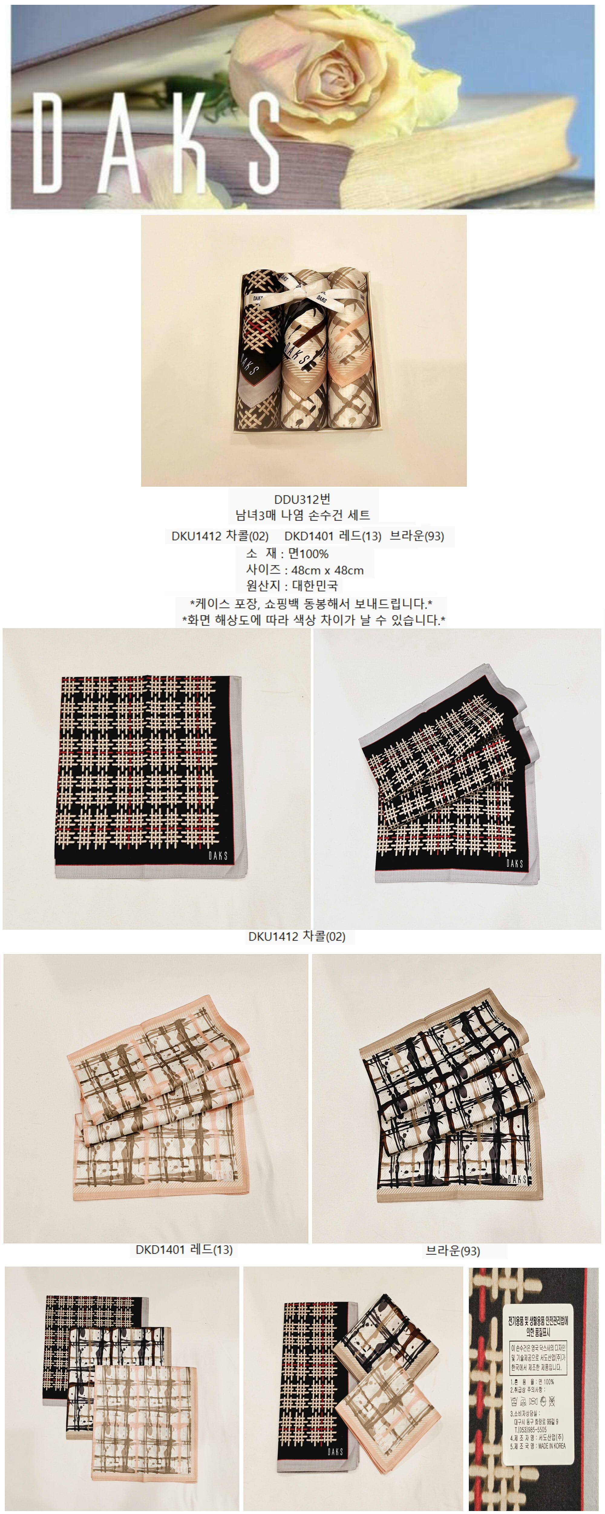 대구백화점 닥스남녀3매 나염 손수건 세트(DDU312번)