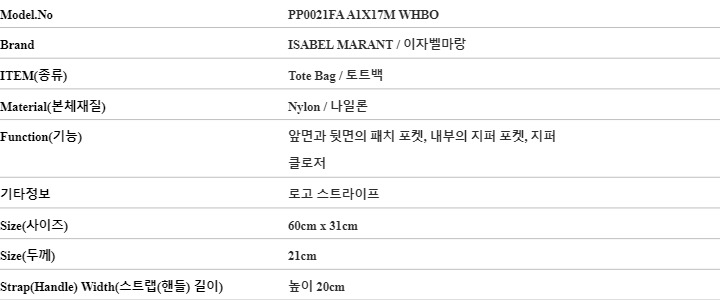 * 상품 옵션(사이즈) : 모델명:PP0021FA A1X17M WHBO *