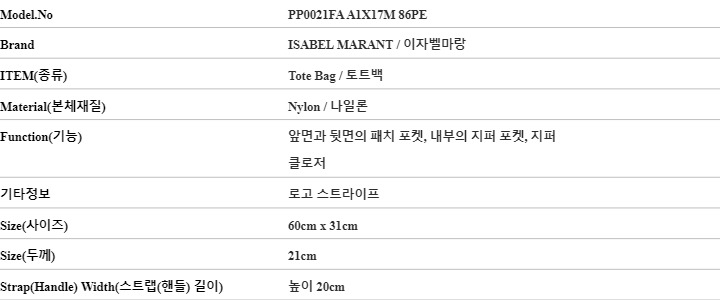 * 상품 옵션(사이즈) : 모델명:PP0021FA A1X17M 86PE *