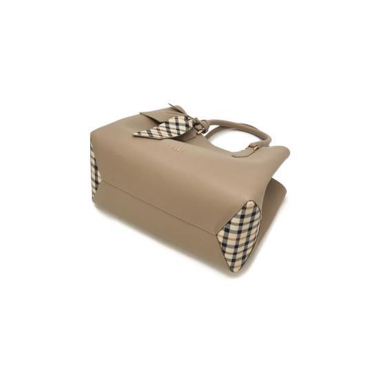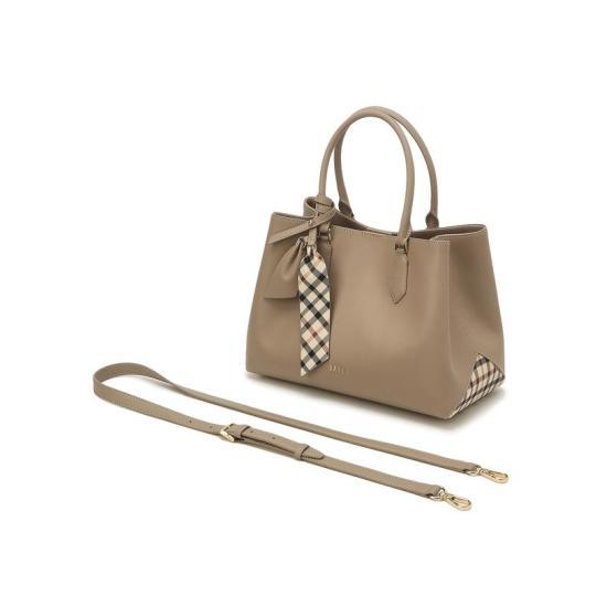 (롯데백화점)베이지 체크배색 소가죽 토트백 DCBA5E132