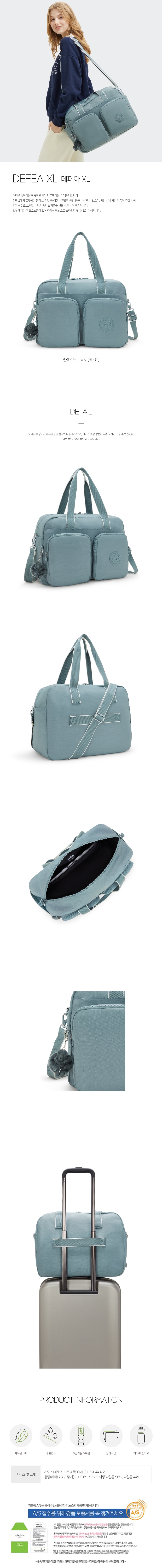 (롯데백화점)키플링 28리터 여행 보스턴백 데페아 XL 릴렉스드 그레이 KPABR05 RLGY