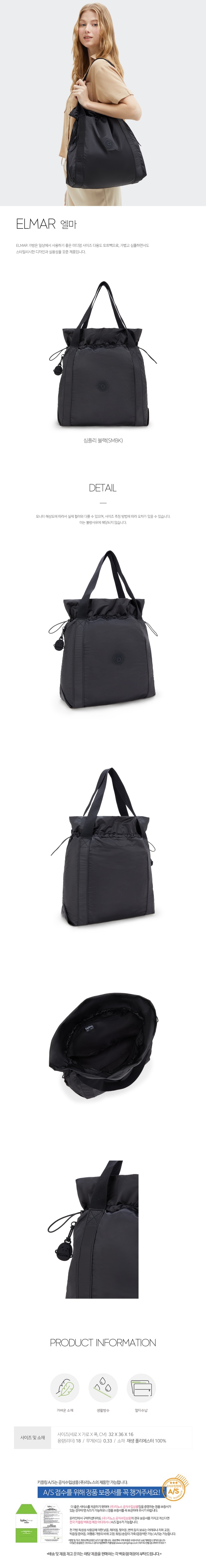 (롯데백화점)키플링 가벼운 숄더백 토트백 엘마 심플리 블랙 KPABT11 SMBK