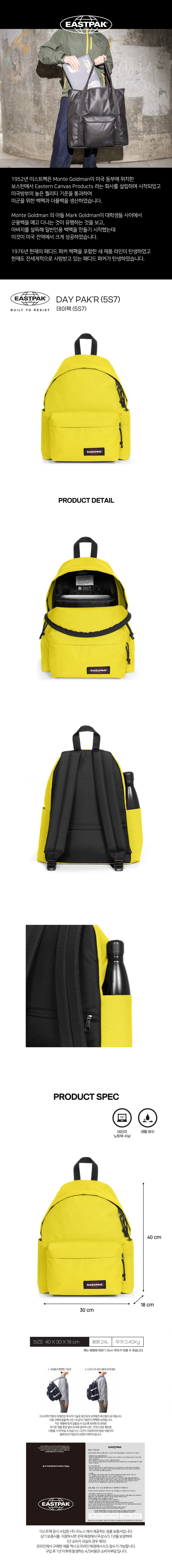 (롯데백화점)이스트팩 남녀공용 24리터 백팩 데이팩 옐로우 EPABA04 5S7