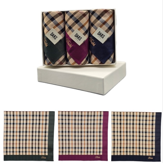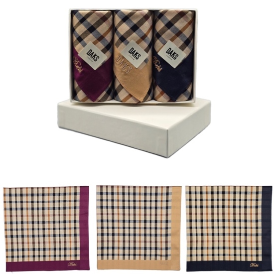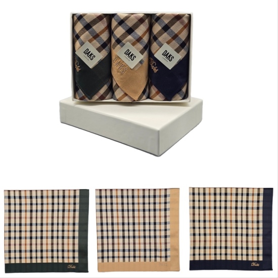 (롯데백화점)3매 기본체크 남녀 손수건세트 DDO1215 4종 택1