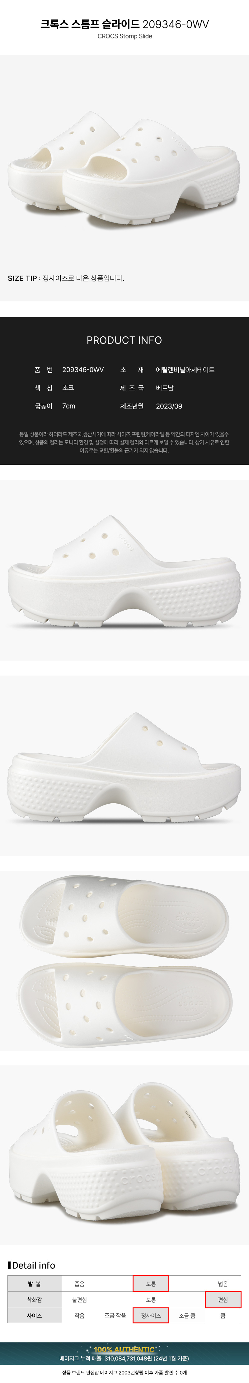 2025 SS 크록스 여성 스톰프 통굽 키높이 슬라이드 슬리퍼 샌들 초크 209346-0WV