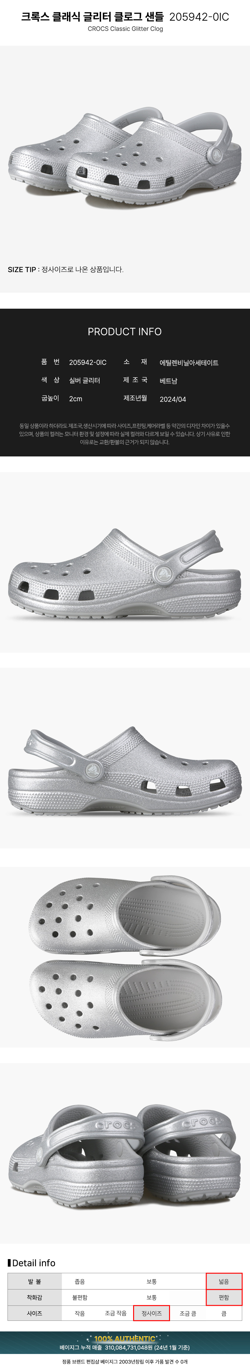 2025 SS 크록스 클래식 글리터 클로그 여성 슬리퍼 샌들 실버 205942-0IC