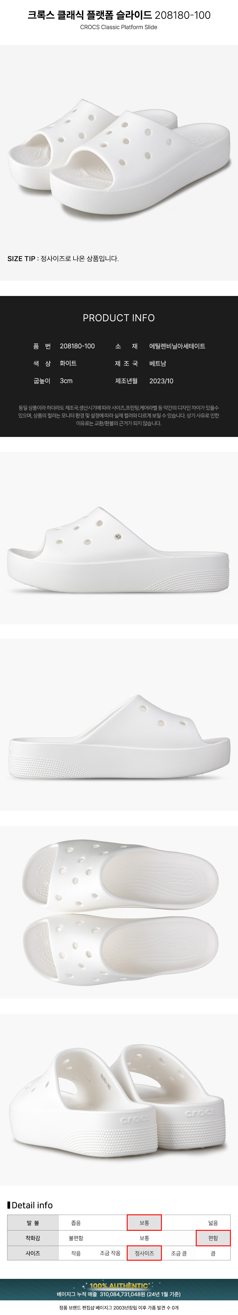 2025 SS 크록스 클래식 플랫폼 슬라이드 여성 통굽 슬리퍼 샌들 화이트 208180-100