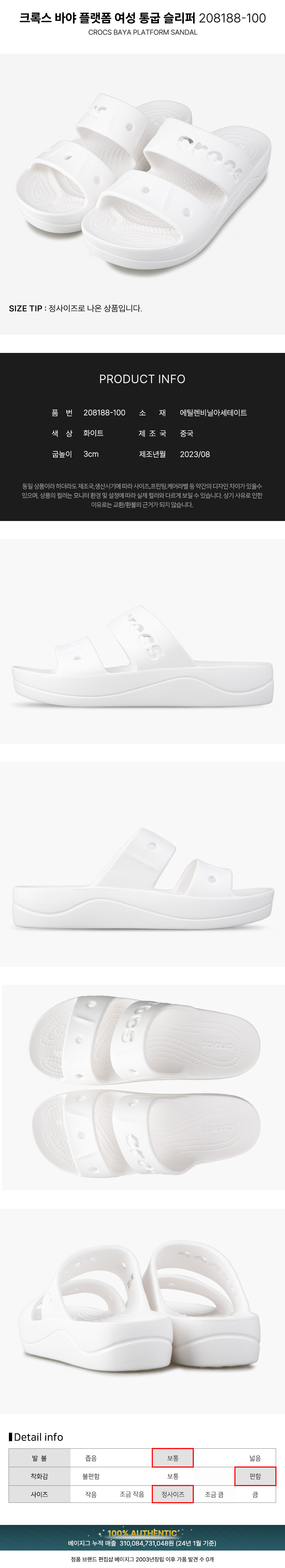 2025 SS 크록스 바야 플랫폼 여성 통굽 슬리퍼 키높이 샌들 화이트 208188-100