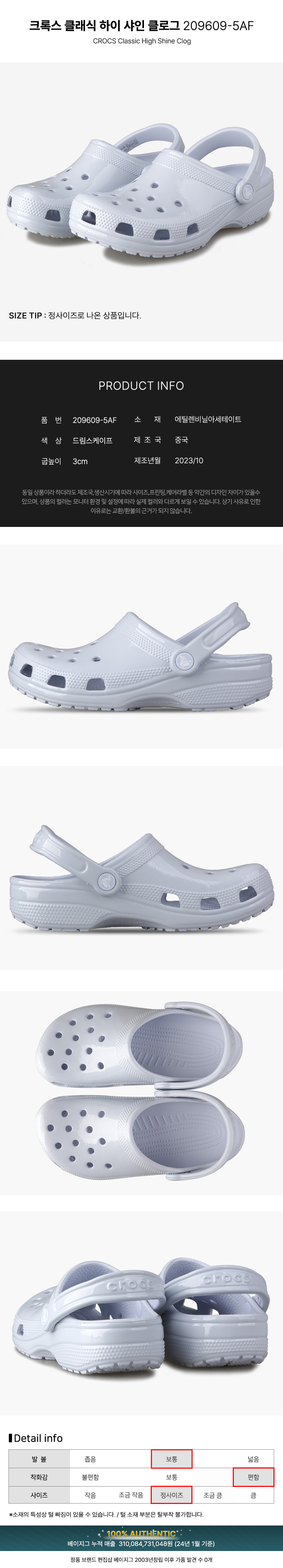2025 SS 크록스 클래식 하이 샤인 클로그 여성 유광 샌들 슬리퍼 209609-5AF
