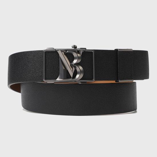 소가죽 흑사틴 로고 자동 벨트 블랙