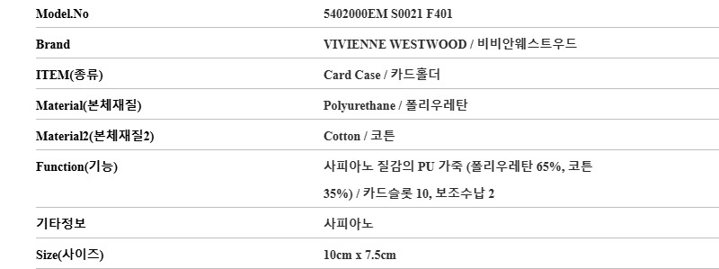 비비안웨스트우드 VIVIENNE WESTWOOD 5402000EM S0021 F401 남성 카드홀더