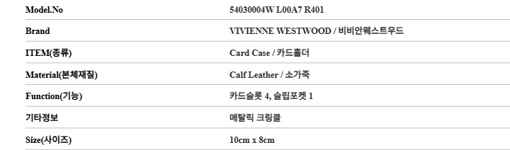 비비안웨스트우드 VIVIENNE WESTWOOD 54030004W L00A7 R401 여성 카드홀더